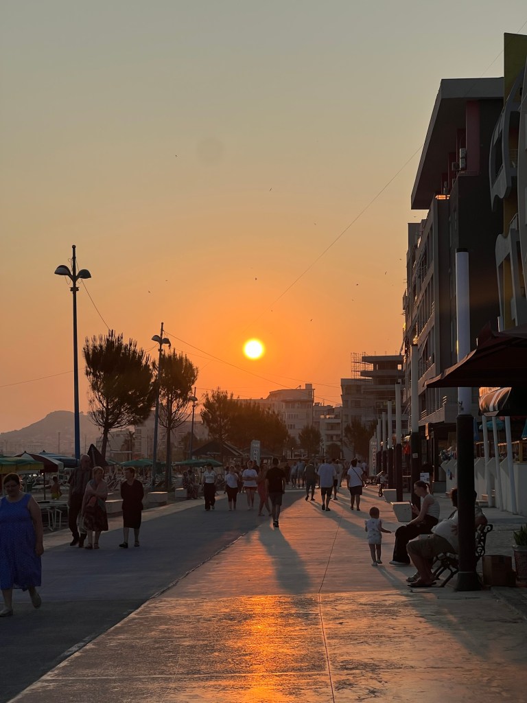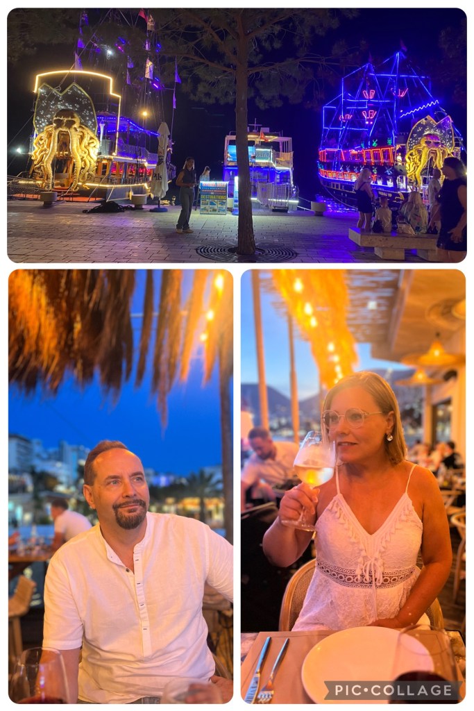 Illan tullen rantabulevardi täyttyi ihmisistä ja musiikki soi ravintoloissa. Tunnelma oli kieltämättä jo ihan kiva. Ehkä täällä pystyy ”kärsimään” sen pari päivää.