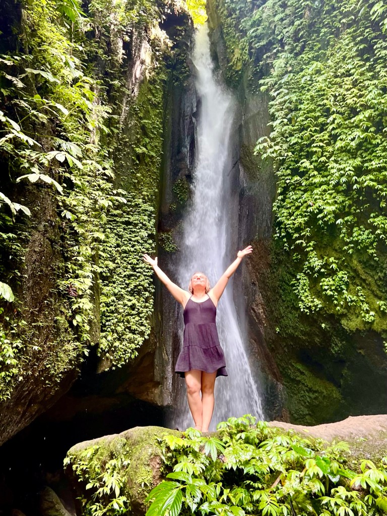 Buukattiin kokopäiväretki Kadekilta tiistaipäivälle. Kympiltä starttasimme kohti Leke Leke -vesiputousta. Sinne oli noin puolentoista tunnin matka joka meni läpi paikallisten kylien ja maaseudun. Oli mielenkiintoista katsella paikallista maisemaa. Näimme lukemattomia riisipeltoja ja paikallisia työssään.