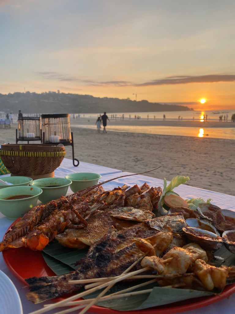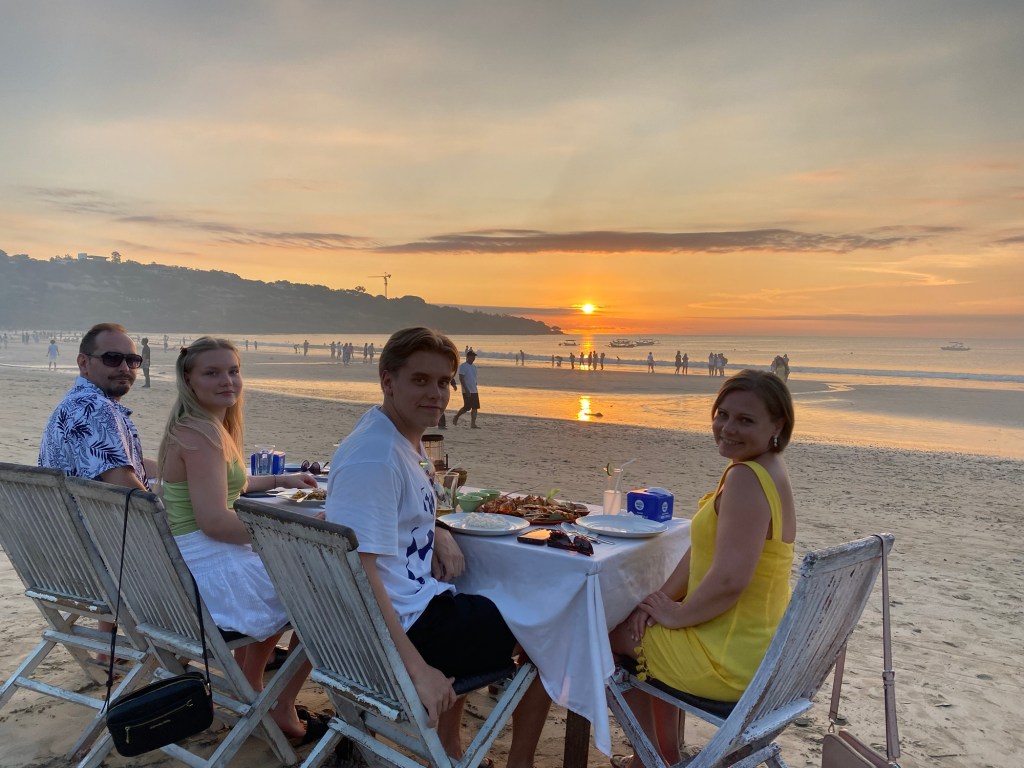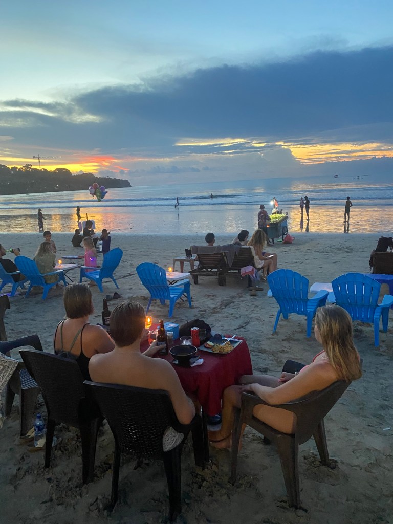 Auringon laskiessa mentiin rannalle ja siitä suoraan rantaravintolaan. Olipa rento päivä. Kiitos Bali, oli täydellinen loma ja ennen kaikkea rakkaimpien matkakumppaneiden kanssa. Kohteena Bali oli kyllä aivan huippu, todella paljon näkemistä ja kokemista jäi seuraavaan kertaan. Toivottavasti se olisi kuukauden pituinen.