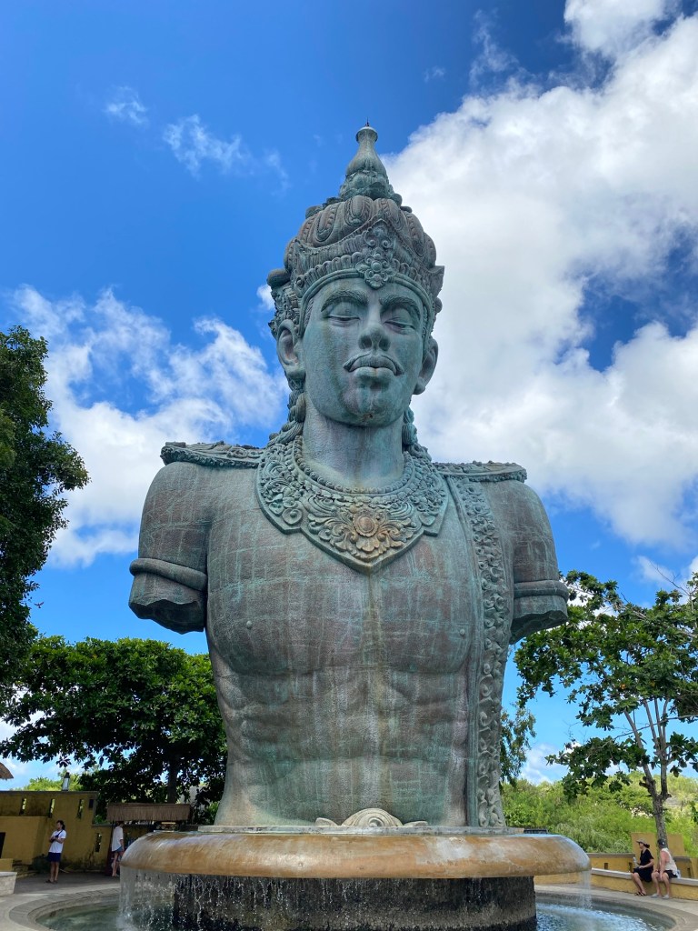 Uluwatu on Balin saaren eteläisin osa, koko saaren sanotaan muistuttavan muodoltaan kanaa ja Uluwatu on kanan jalat. Tämä Jimbaran missä nyt olemme on aivan lähellä Uluwatua, eikä aamukumpiltä kauaa nokka tuhissut kun olimme jo Bali Cultural Parkissa. Kyseessä on patsaspuisto, jonne on erikseen rakennettu patsaita jotka esittelevät balilaista mystiikkaa ja jumaliakin kai. Ihan hieno paikka.