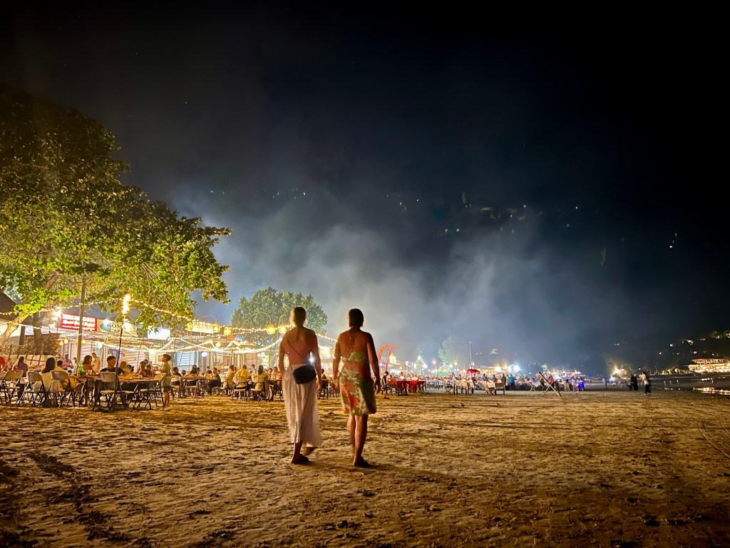 Aamupäivällä oli tosi rauhallista mutta aika äkkiä paikat alkoivat täyttämään ja musa alkoi soimaan kovempaa. Paikka oli tosi kiva ja kyllä kelpasi, ruokaa ja juomaa sai tilata paikalle ja kaikenlaista viihdykettä ilmestyi tasaisin väliajoin. Tanssivia viihdyttäjiä päivällä ja illalla sitten vielä lisää.