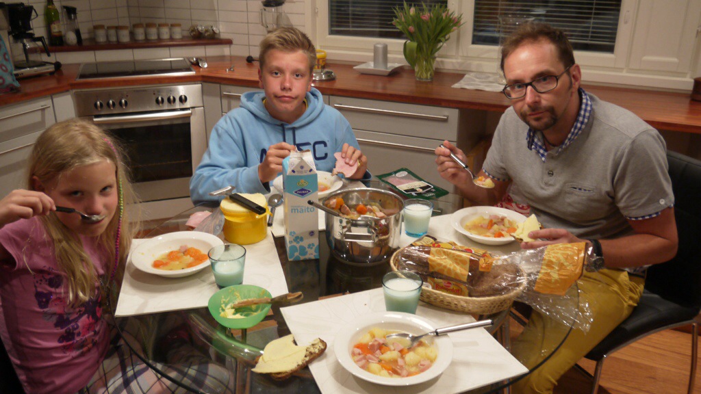 Eilen kotona meitä odotti Mummin tekemä makkarakeitto ja ruisleipä. Ai että ne maistuivat hyvälle! Rinkat jätettiin yöksi ulos mahdollisten ötököiden takia ja tänään olen niitä terassille purkanut ja tuonut sisälle sitä mukaa kun koneeseen on mahtunut. Pyykkishow jatkuu vielä monta päivää. Kaikki on pestävä, myös se yksi kolmasosa jota ei edes tarvittu eli liian kuumat vaatteet.