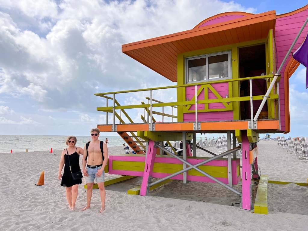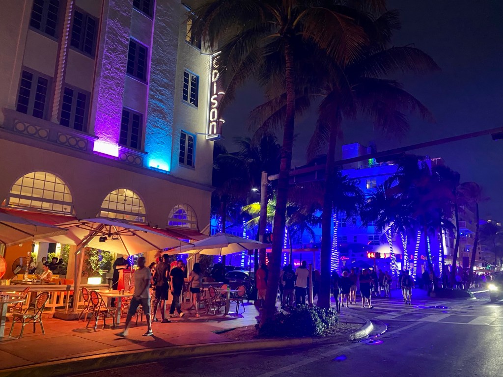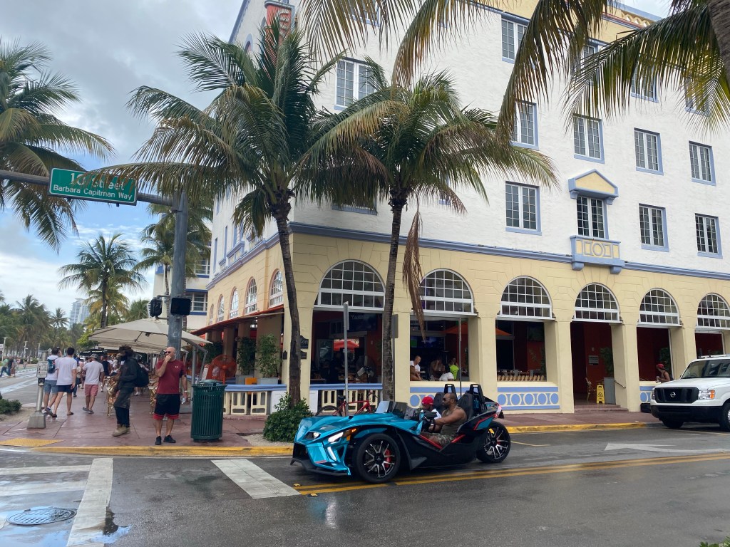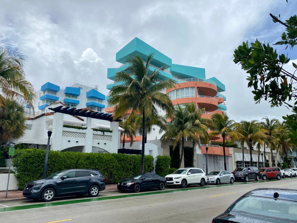 Teki hyvää kävellä eilisen matkustuspäivän jälkeen ja ihastella rannan hotelleja art deco -hotelleja.