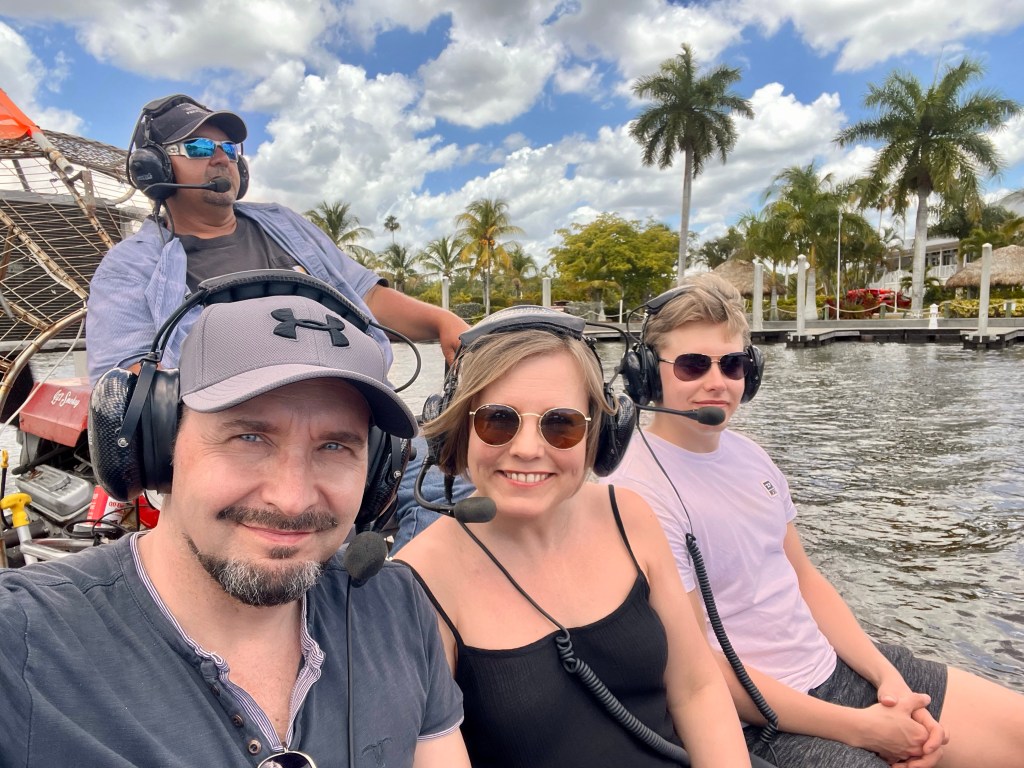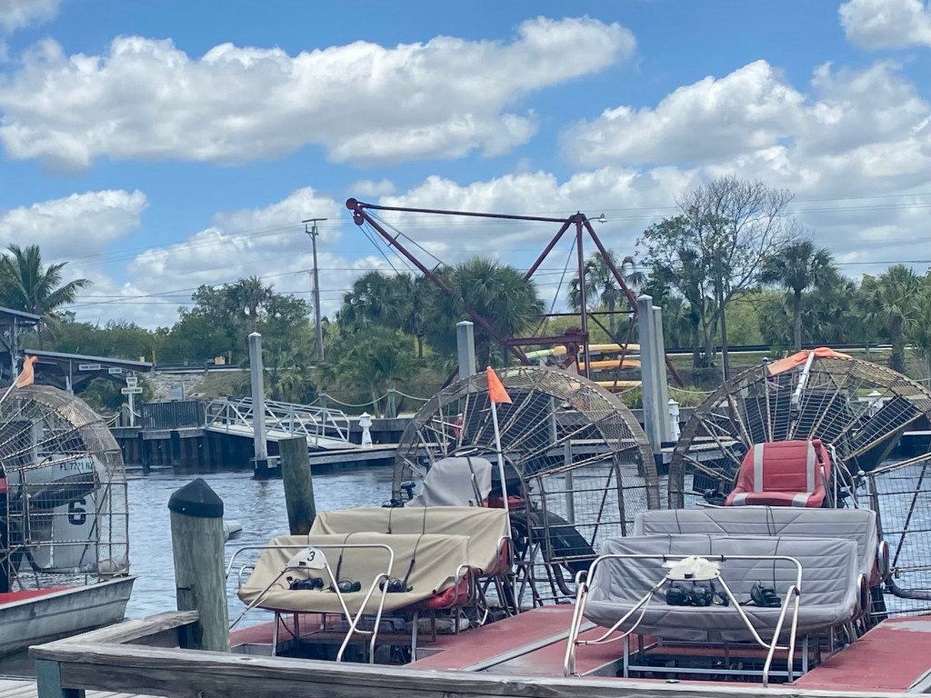 Kyseessä oli kuuden hengen suokiituri joka piti aikamoista meteliä. Air boat, suokiituri eli rämevene on työntöpotkurilla toimiva latteapohjainen vesi- ja suokulkuneuvo. Moottorin voima välittyy siinä ilmaan. Aluksessa käytetään joko auton tai lentokoneen moottoria. Ne ovat suosittuja esimerkiksi erityisesti täällä Floridan rämealueilla Evergladesissa. Meillä oli kuulosuojaimet ja sieltä saimme kuunnella matkan edetessä selostusta alueen luonnosta.