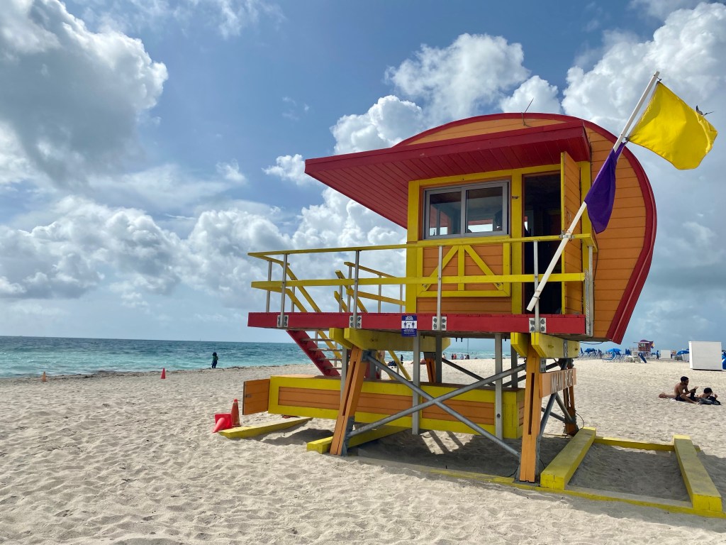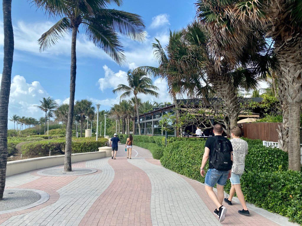 Olimme aamusta asialla ja lähdimme jo yhdeksän aikaan kävelemään Beach Walkia pitkin kohti South Beachia, joka on se ikonisin Miami Beach. Hotellimme sijaitsee Mid Beachilla ja siitä Pohjoiseen jatkuu vielä North Beach. Yhteensä rantaviivaa ja puhtaan valkoista hiekkaa on n. 15 km verran.
