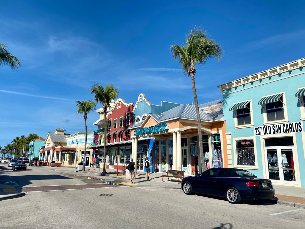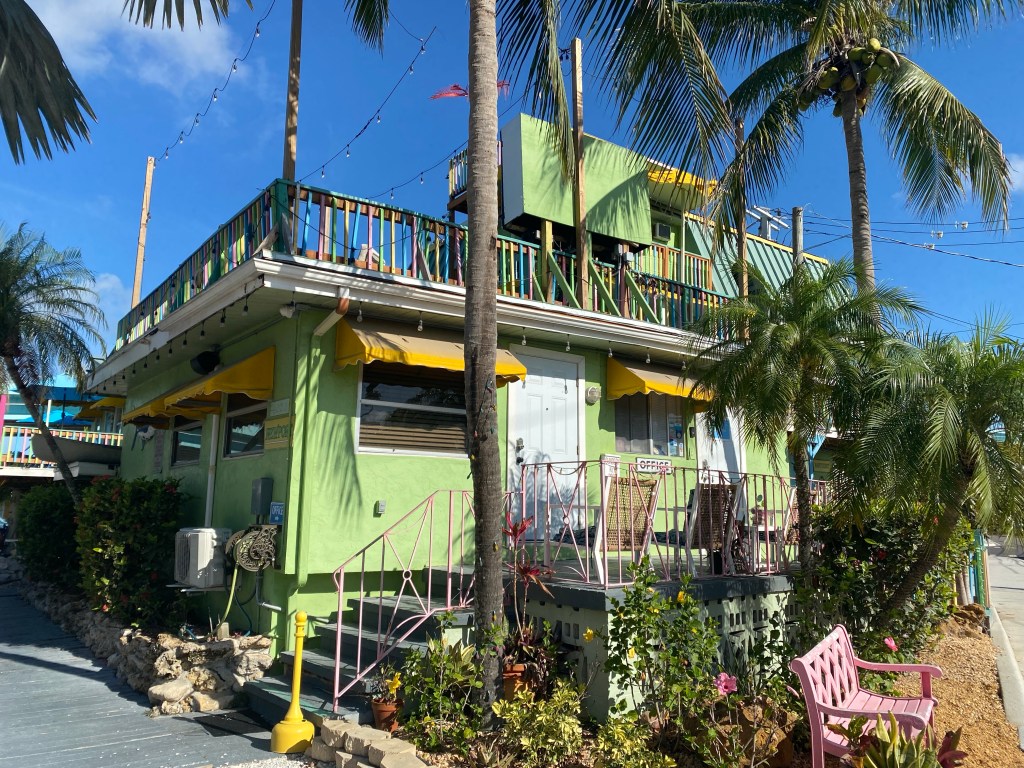 Evergladesilta kesti noin puolitoista tuntia autolla Fort Myersiin tai itse asiassa Fort Myers Beachin alueelle. Paikka oli aika randomisti valittu. Tiesimme vain, että kaikki länsirannikon pikkukaupungit ovat aika idyllisiä rantakohteita. Huoneistohotelli Matanzas Inn oli kertakaikkiaan upealla paikalla kanaalin varrella.