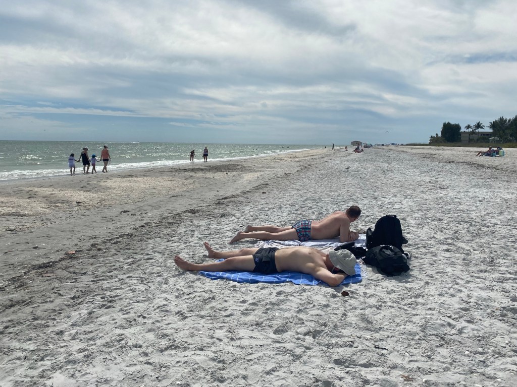 Päivä oli todella kuuma, vesikin niin lämmintä Meksikon lahdessa, että ei se paljon viilentänyt. Aika monta tuntia kuitenkin makoiltiin rannalla.