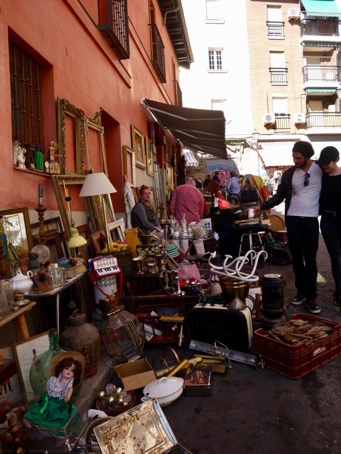 Linnan jälkeen lähdimme kävelemään kohti madridilaisten sunnuntaikirppistä La Huertasin alueella. Paikan nimi tarkemmin oli RASTRO. Siellä oli todella paljon porukkaa liikenteessä, kujat ihan täynnä ihmisiä ja siellä myytiin kaikenlaista tavaraa lewiksistä antiikkiin.