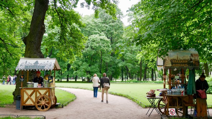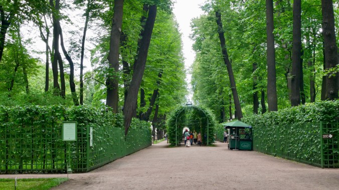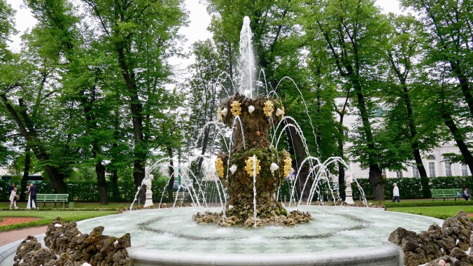 Jatkoimme eteenpäin kohti kesäpuistoa, joka oli graafisempi ja täynnä patsaita ja suihkulähteitä. Siellä runoilija Aleksadr Pushkin on matkaopaskirjasen mukaan ollut kuin kotonaan ja ilmeisesti asunut niillä huudeilla. Pushkin: ”Kesäpuisto on minun pihani. Kun herään, menen sinne aamutakissa ja tohveleissa. Luen, kirjoitan ja otan iltapäivänokoseni siellä. Se on minulle kuin toinen koti.” Eikä ole ihme, että hän on siellä viihtynyt, kaunista oli.