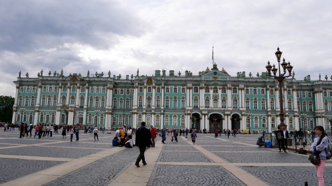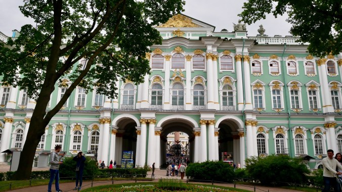 Pienen taivaltamisen jälkeen päädyimme Eremitaasille, jonne mennään myös sisälle joku toinen päivä. Siihen pitää olla hyvin valmistautunut, sillä siellä on nähtävää 15 vuoden ajaksi, jos katsoisi teoksia 8 h joka päivä ja jokaista vain minuutin!
