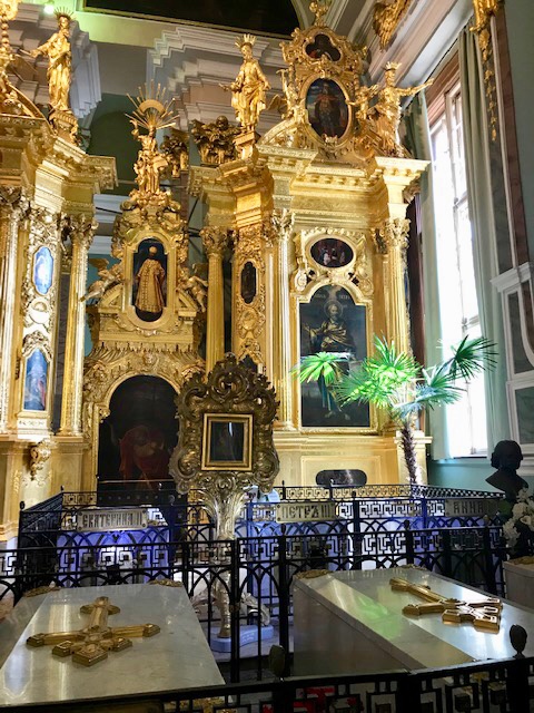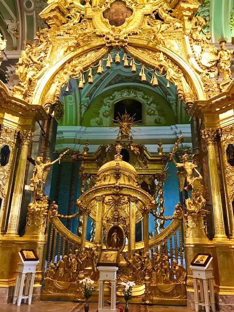 Päätimme lähteä ensimmäiseksi tutustumaan Kristuksen ylösnousemuksen katedraaliin eli Kirkkoon veren päällä. Kirkko on saanut nimensä siitä kun tsaari Aleksanteri II murhattiin siihen paikalle ja kirkko rakennettiin hänen muistokseen. Siellä on matkaoppaskirjasen mukaan pidetty aikanaan vain yksi jumalanpalvelus ja se on toiminut Neuvostoliiton aikana varastona. Herran jestas, komea varasto! Kirkko on avattu 30 vuoden kunnostuksen jälkeen vasta 1997. Pääkupoli oli harmiksemme just remontissa.