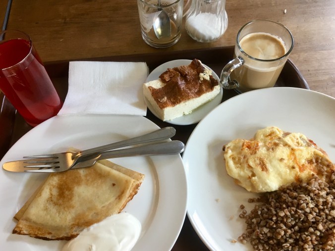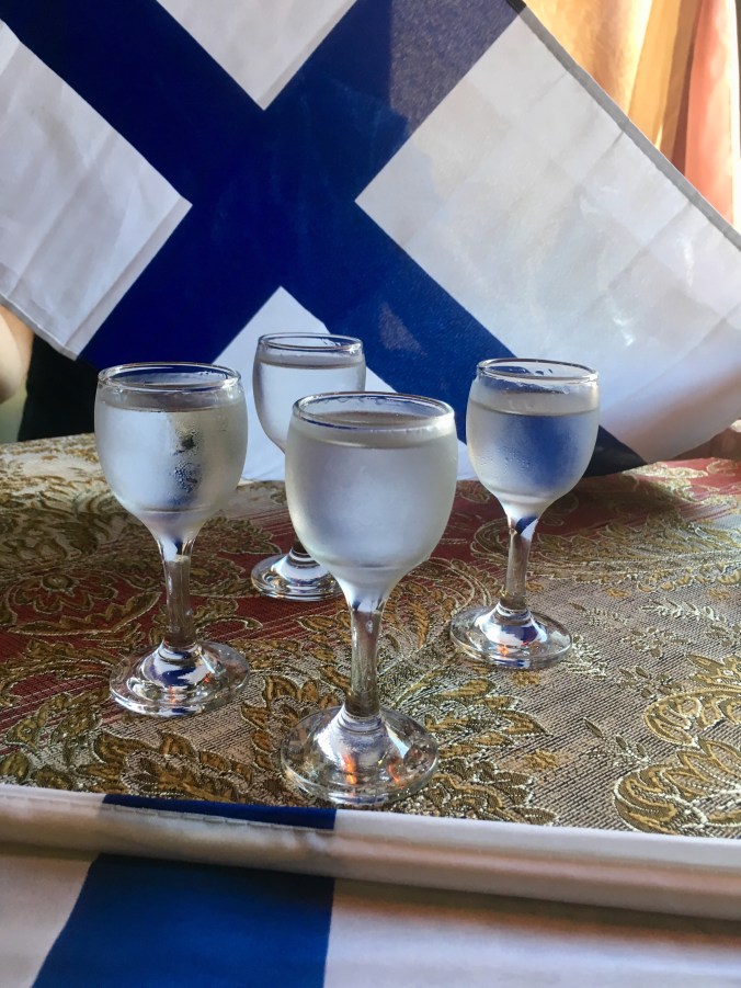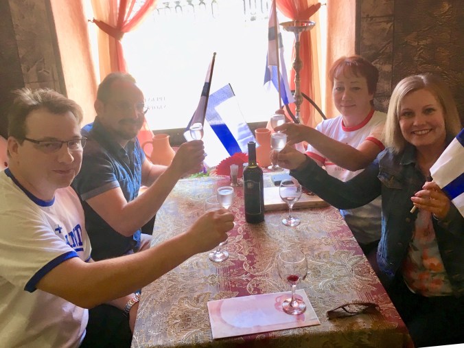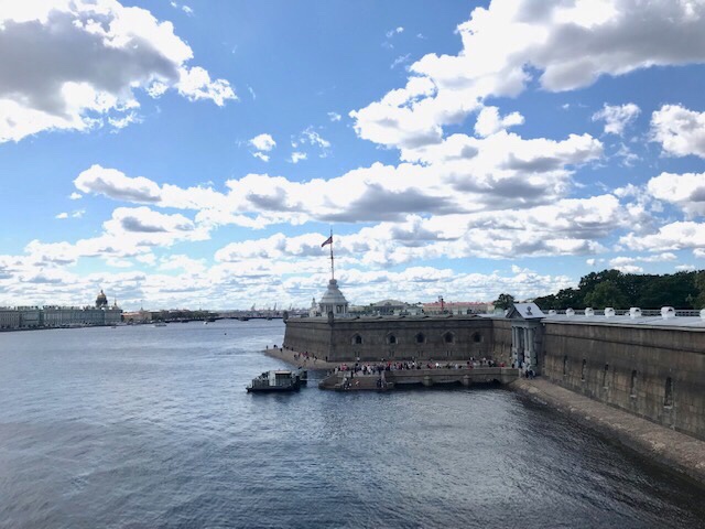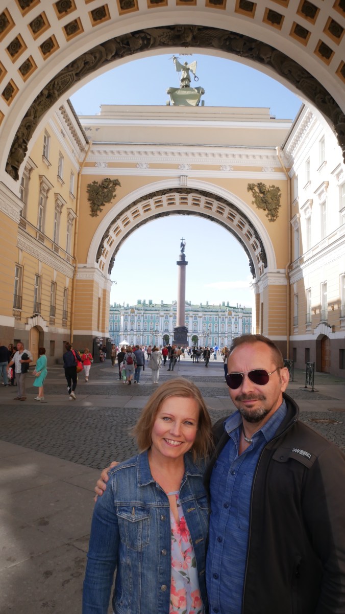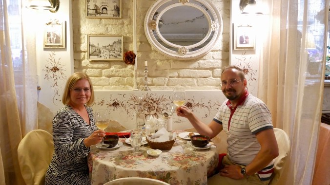 Kaikenlaista hienoa puistoa oli kävelty ja suuta kuivasi jo kovasti. Huonosti oli ollut näkyvissä terasseja, joista matkalaisille saisi sopivaa suun kostuketta. Kiersimme puistoalueelta Miljoonakatua pitkin takaisin Verikirkolle ja pääkadulle Nevski Prospektille päin kävellessä löysimme vihdoin terassin, josta sai kuohuvaa ja olutta! Aurinkokin näyttäytyi sopivasti ja pieni tauko oli tarpeen.