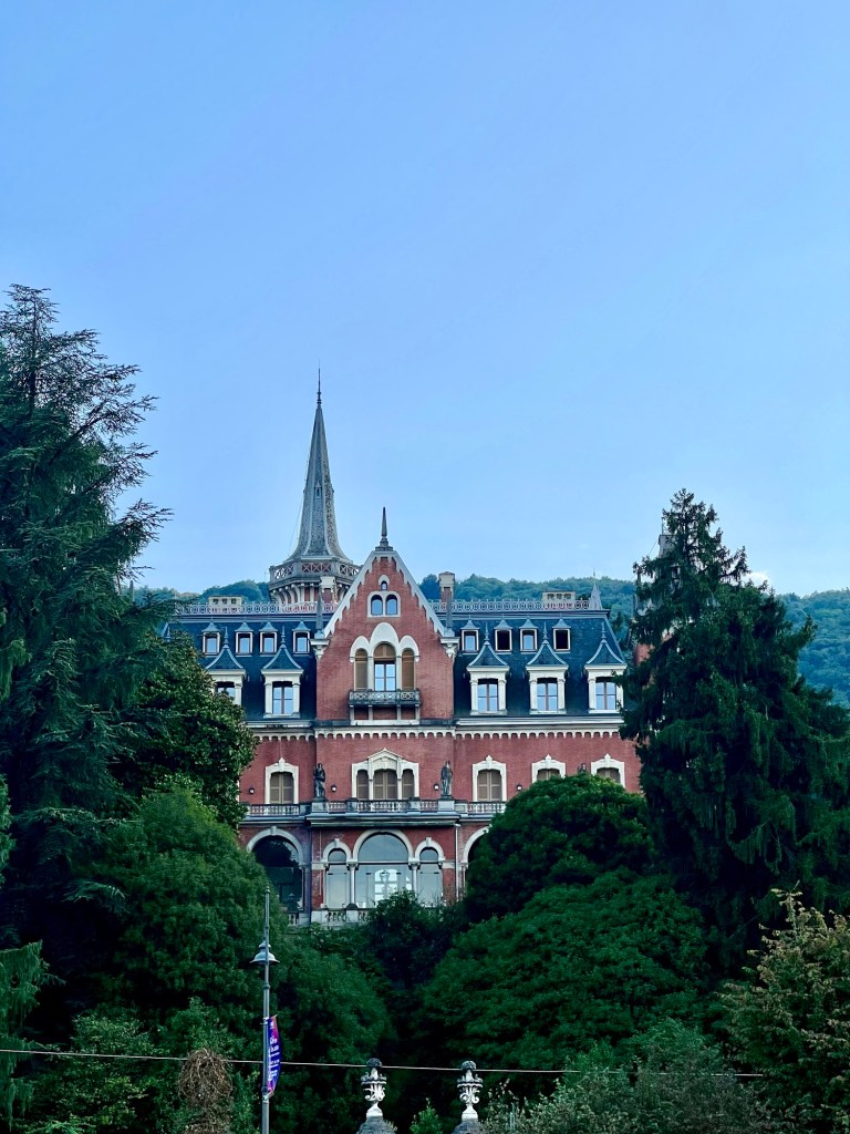 Rantakadulla maisemaa hallitsi vastarannalla vuoren päällä oleva linna. Mietittiin pääsisiköhän sinne sisälle käymään.