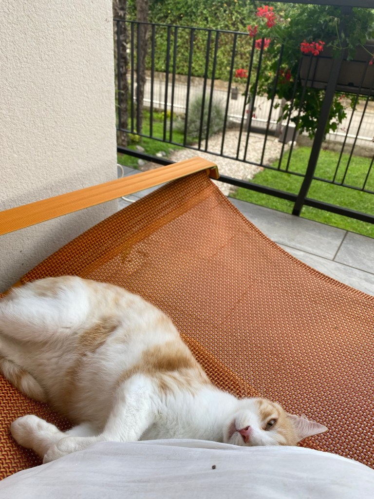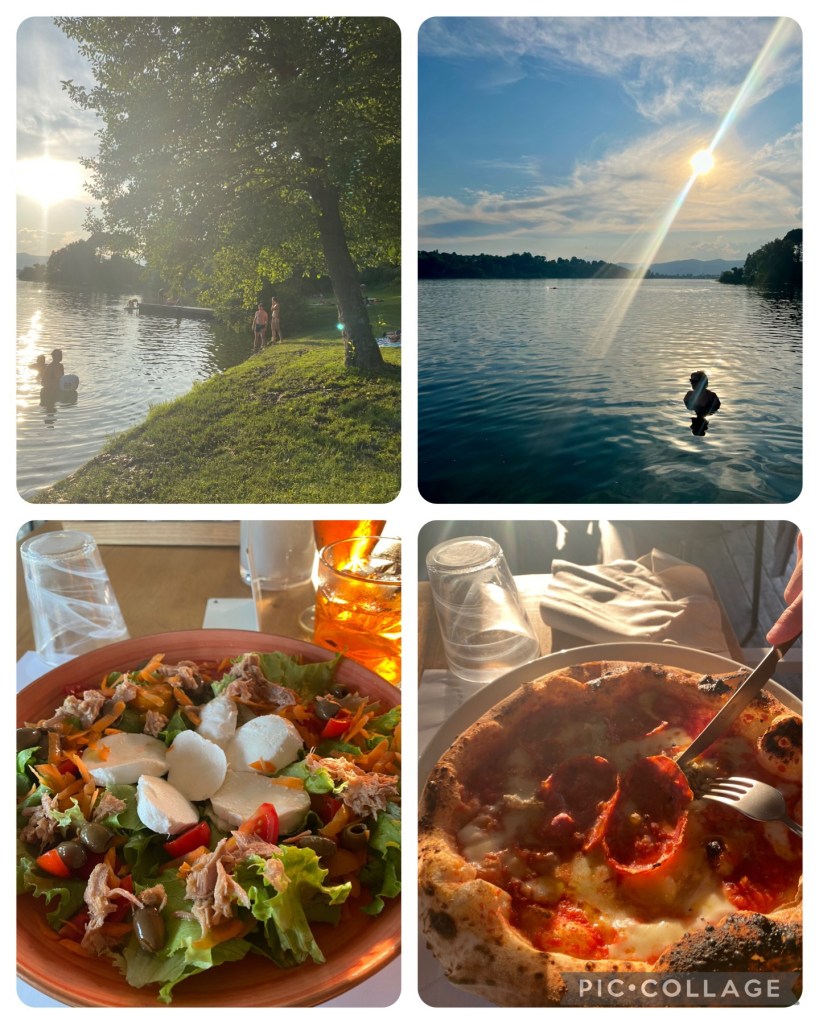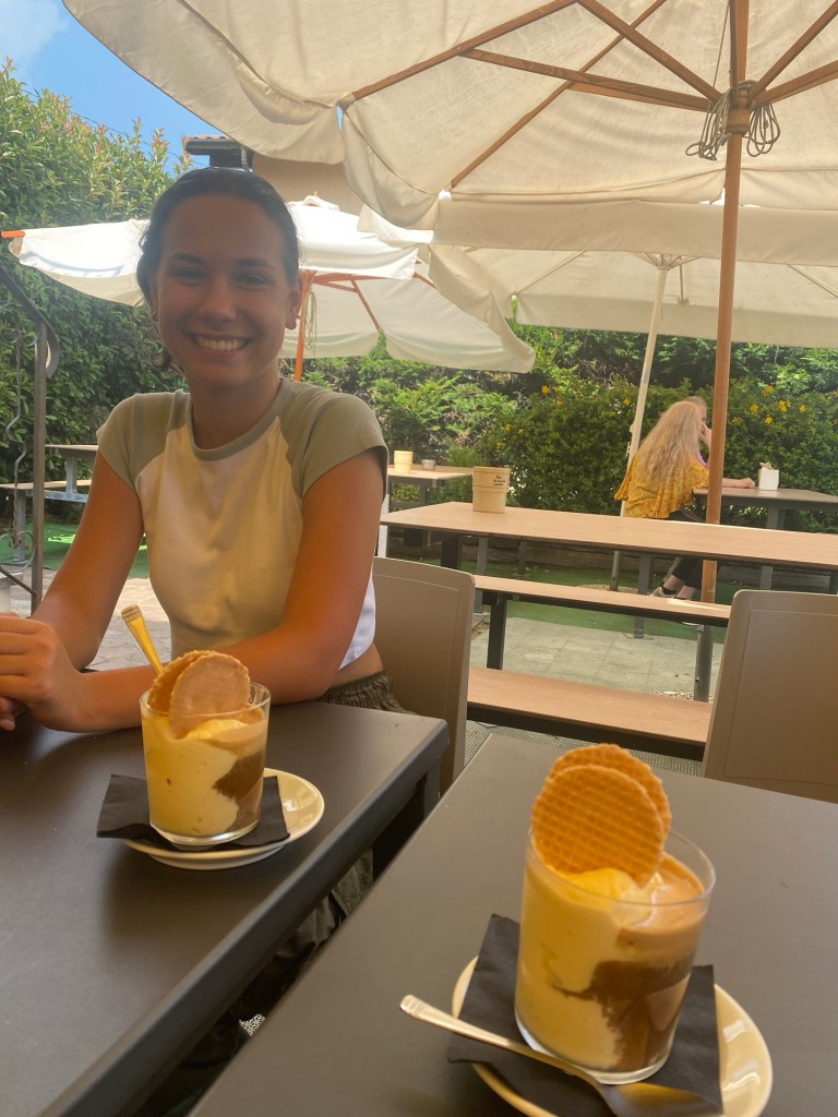 Tänään saimme Ninan tyttären Paulinan kotiin vajaaksi vuorokaudeksi. Hän kävi vain pikaisesti kotona ja jatkoi sitten matkaansa Laiguegliaan. Siellä olemmekin olleet käymässä varmaan viitisen vuotta sitten. Olipa kiva jutella Paulinan kanssa kuulumisia. Veimme hänet syömään kylän keskustan La Parada -ravintolaan. Kello oli nimittäin kolme ja kaikki rannan ravintolat olivat juuri menneet kiinni. Oli lounaan ja illallisen välinen aika. Mutta ehkä juuri La Parada olikin oikea valinta, sillä ilman Paulinaa emme olisi osanneet tilata sieltä piadinaa, joka on vähän kuin tortillan tai quesadillan ja pitsan välimuoto. Piadinan sisälle saa useita täytteitä, ne ovat tortillatyylisen mutta paksumman lätyn sisällä. Otin mozzarellaa ja tomaattia, Reimalla oli pekonia, provola-juustoa ja sieniä. Olivat todella herkullisia ja täyttäviä. Jälkiruuaksi otin saman kuin Paulina eli affogaton, joka on kahvi, jossa on gelatopallo mukana. Sekin oli uusi tuttavuus ja herkulllista.