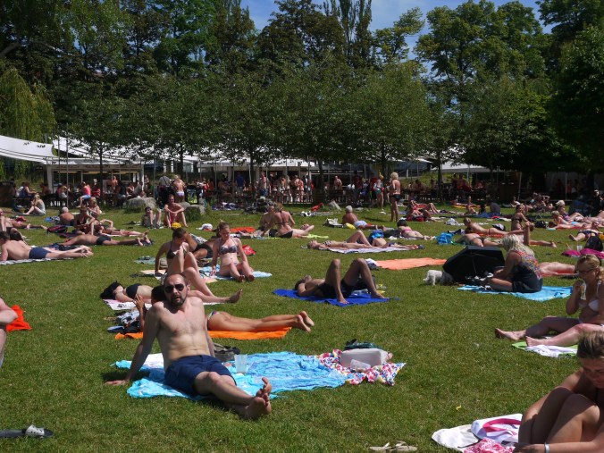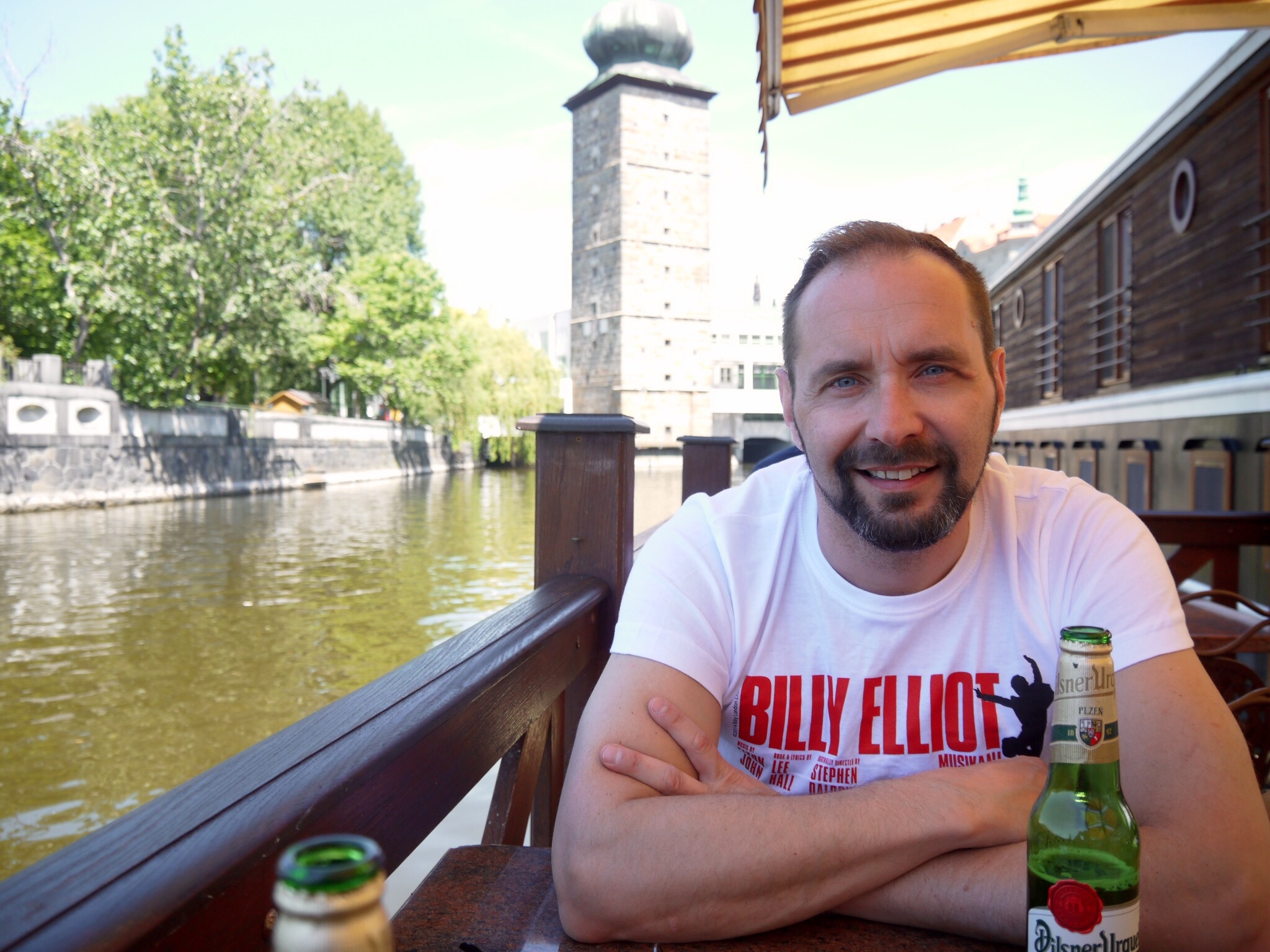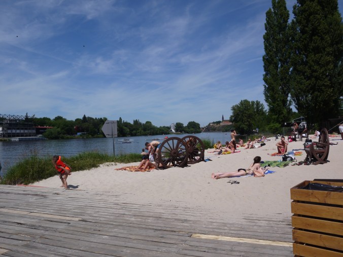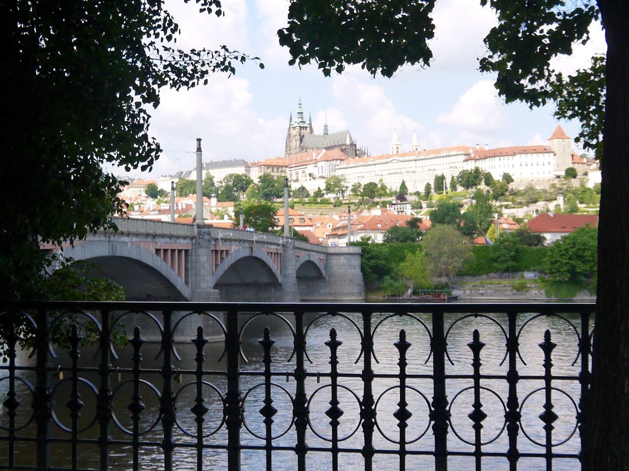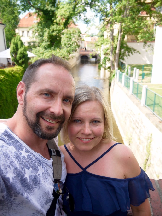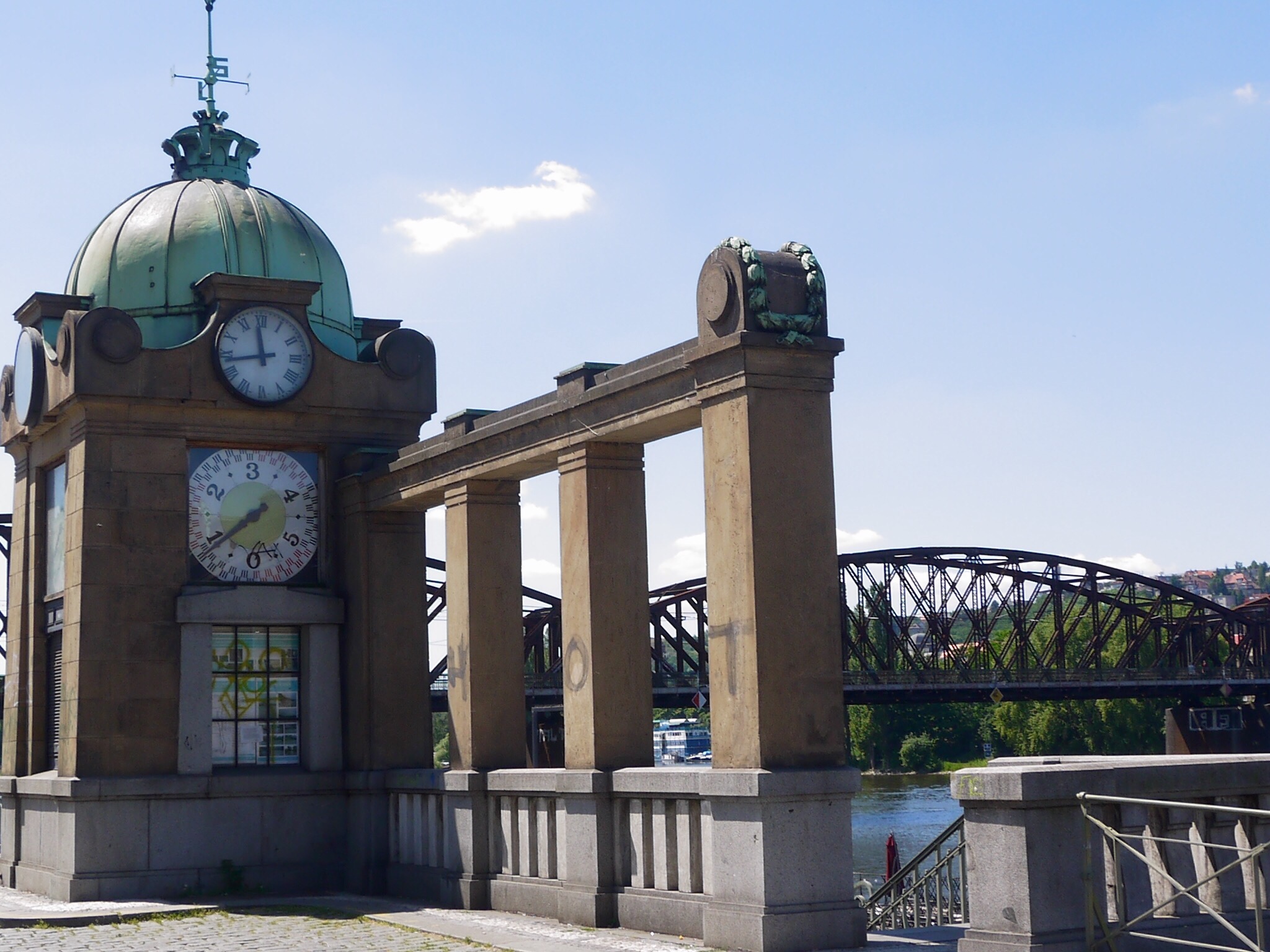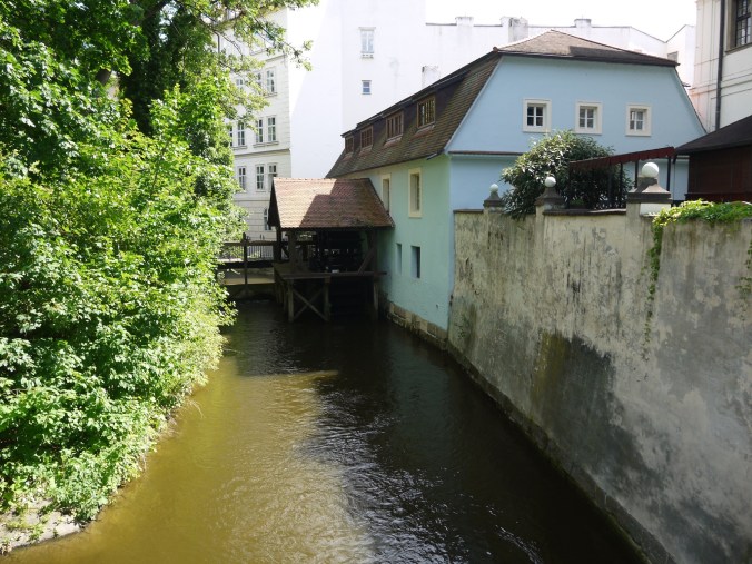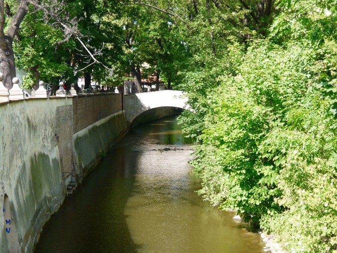 Eilen illalla todettiin, että yksi paikka keskustan alueelta oli vielä näkemättä, nimittäin vastarannalla Mala Staranalla eli pienellä puolella sijaitseva Kampasaari. Siellä oli modernin taiteen museo, jonne ei menty, sen sijaan käveleskelimme rauhallisessa ja varjoisassa puistossa. Itse saari on pieni, kapealla kanavalla mantereesta erottuva kaistale. Kanava oli nätti ja sen yli meni kivoja pikku siltoja.