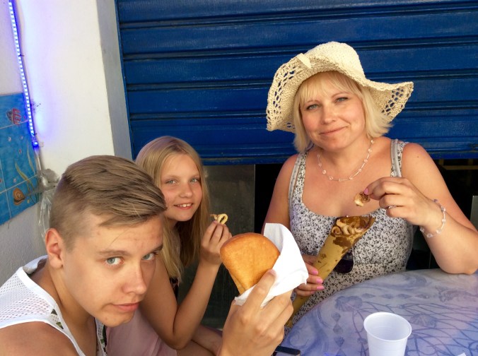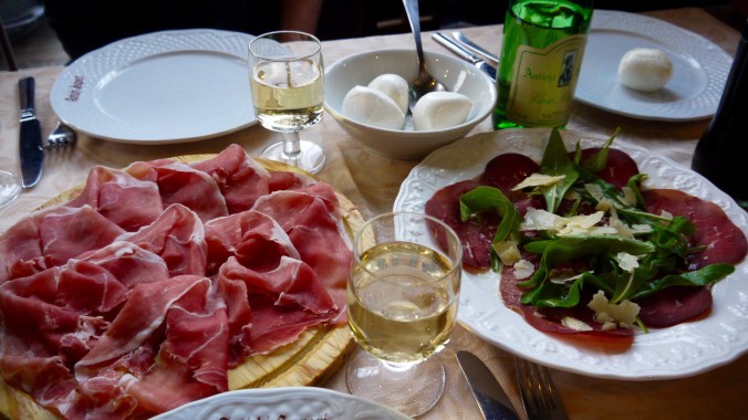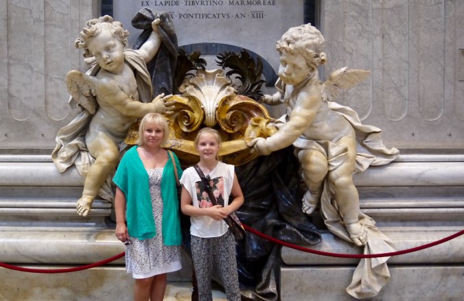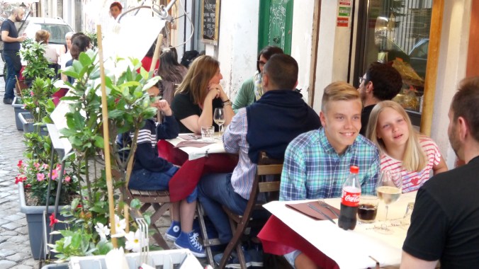 Illalla menimme lähimpään ravintolaan syömään ja vanha omistajasetä ihastui niin Mineaan, että toi hänelle jälkkäriksi ilmaiseksi tuoreita kirsikoita. Ruoka ei ollut kovin kummoista, mutta hintatasoon nähden ihan ok. Illan tullen lämpötila laski ehkä 25 asteeseen ja oli kiva kun ehdittiin vielä istua rauhassa iltaa Roomassa. Aamulla lähtö Suomeen, heippa Rooma!