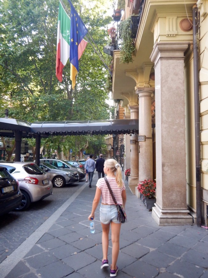 Käveleskeltiin takaisin hotelille hienoja katuja pitkin. Siinä näytti olevan viiden tähden hotellia rivissä ja samaten merkkivaateliikkeitä. Kiva kun tuli nähtyä tämäkin osa Roomaa vielä.