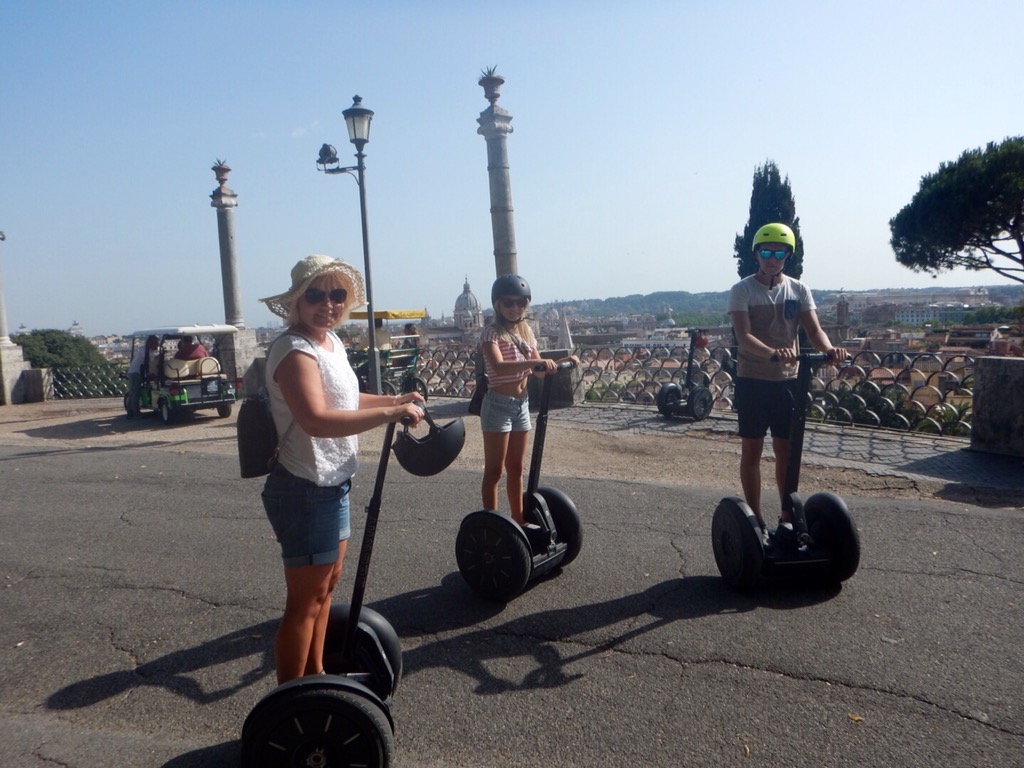 Paikan päällä meille kaupiteltiin kulkupeliksi Segwaytä ja nehän me vuokrattiin. Minä kyllä vähän epäröin, että mitenköhän sellaisella kulkeminen onnistuu, mutta se oli tosi helppoa pienen opastuksen jälkeen.
