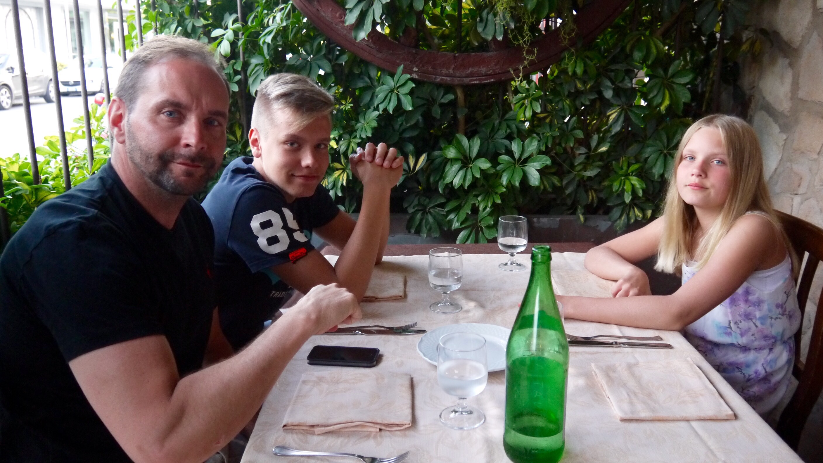 Illalla menimme lähimpään ravintolaan syömään ja vanha omistajasetä ihastui niin Mineaan, että toi hänelle jälkkäriksi ilmaiseksi tuoreita kirsikoita. Ruoka ei ollut kovin kummoista, mutta hintatasoon nähden ihan ok. Illan tullen lämpötila laski ehkä 25 asteeseen ja oli kiva kun ehdittiin vielä istua rauhassa iltaa Roomassa. Aamulla lähtö Suomeen, heippa Rooma!
