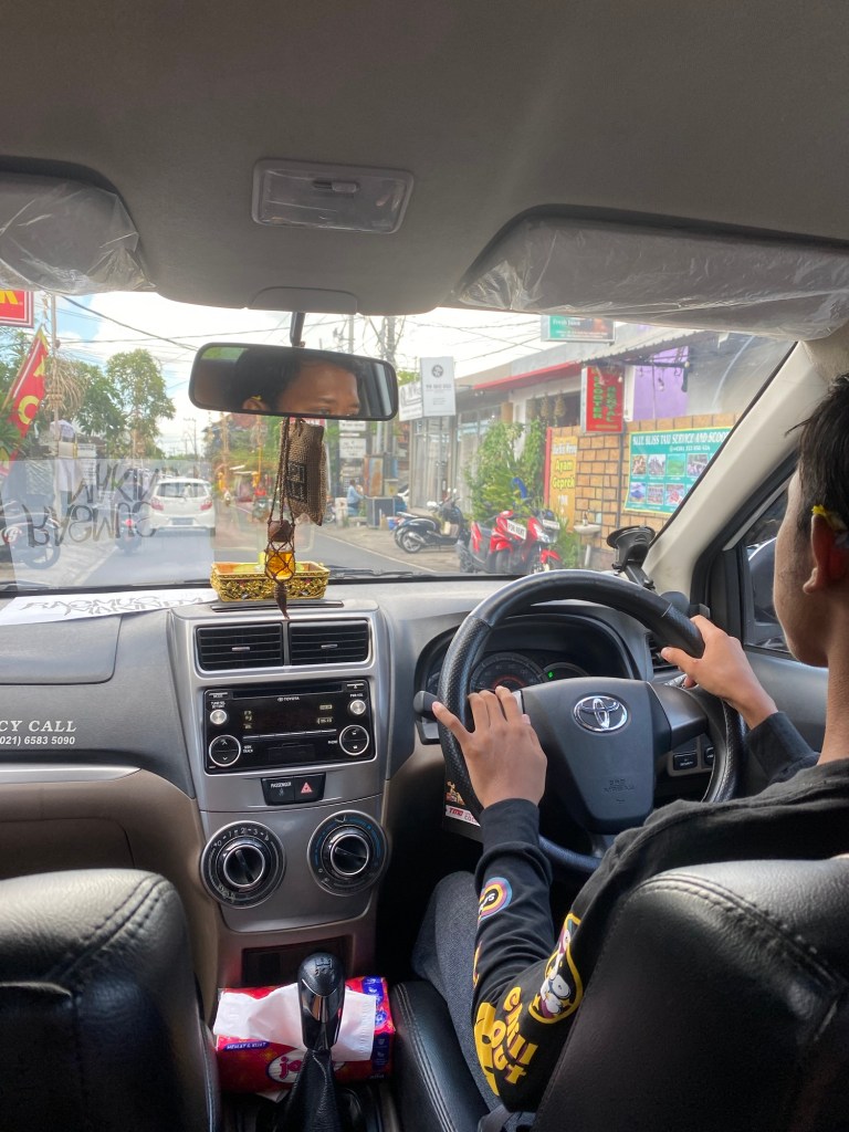 Aamulla kympiltä oli sovittu kuskin kanssa treffit hotellille puolipäiväretkeä varten. Samalla saadaan matkalaukut säilöön autoon, sillä paikkakin vaihtuu tänään. Meidät haki silloin lentokentältä, kun saavuimme, yhden suomalaisen kaverin suosittelema Wayan, mutta hänet oli jo buukattu koko viikoksi toisen asiakkaan toimesta. Hän suositteli, että tilaisimme retket hänen veljenpojaltaan. Niin sitten tehtiin, ja aamulla meidät haki ihana ja kohtelias Kadek. Hän kertoi olevansa 25-vuotias, mutta tosi nuoren näköinen. Hän näytti meidän silmään 10 vuotta nuoremmalta. Oikein hyvä kuski oli ja buukkasimme saman tien hänet hakemaan myös lapset lentokentältä, kun tänään ovat tulossa.